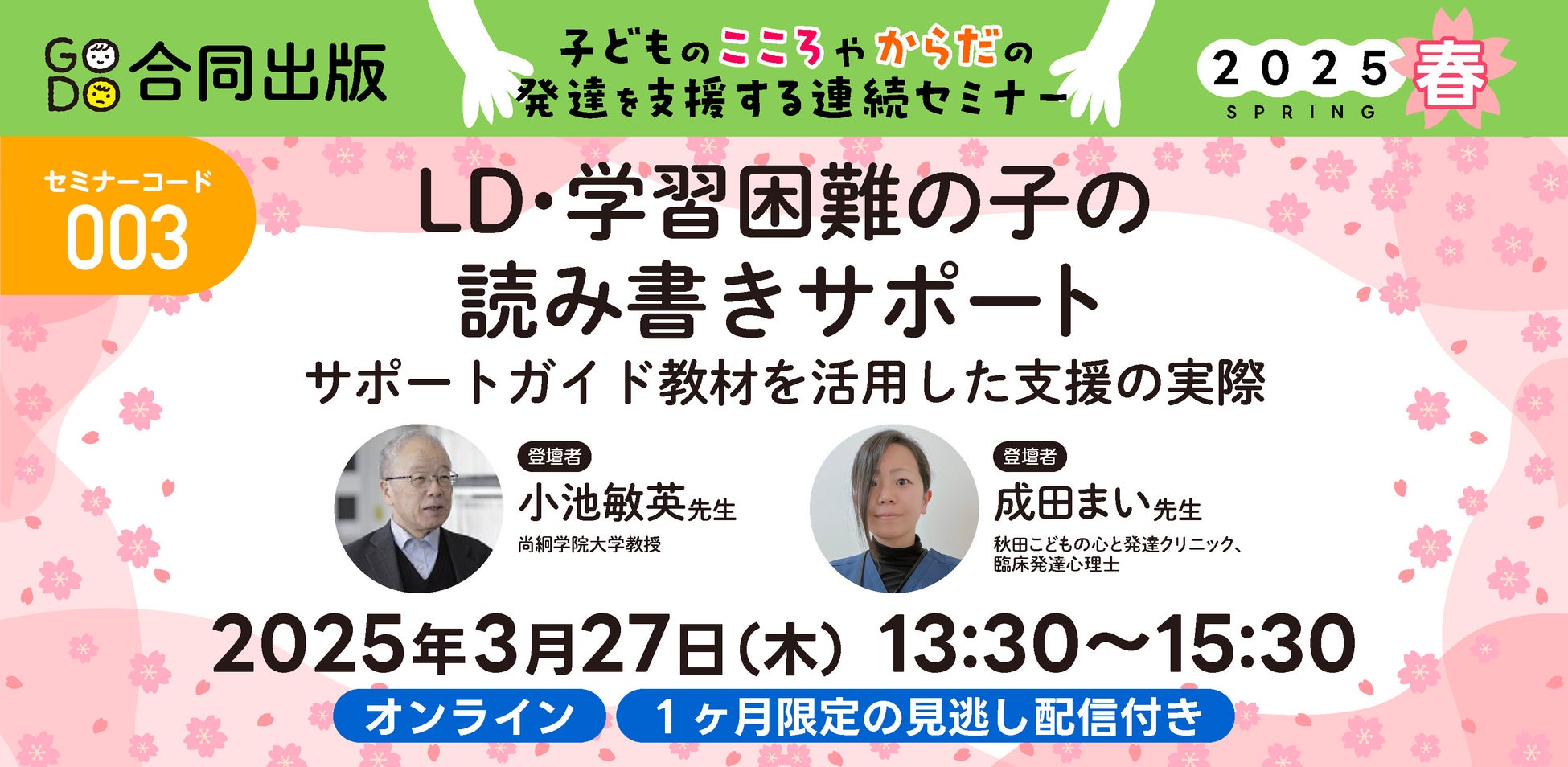 セミナーコード003「LD・学習困難の子の読み書きサポート サポートガイド教材を活用した支援の実際」