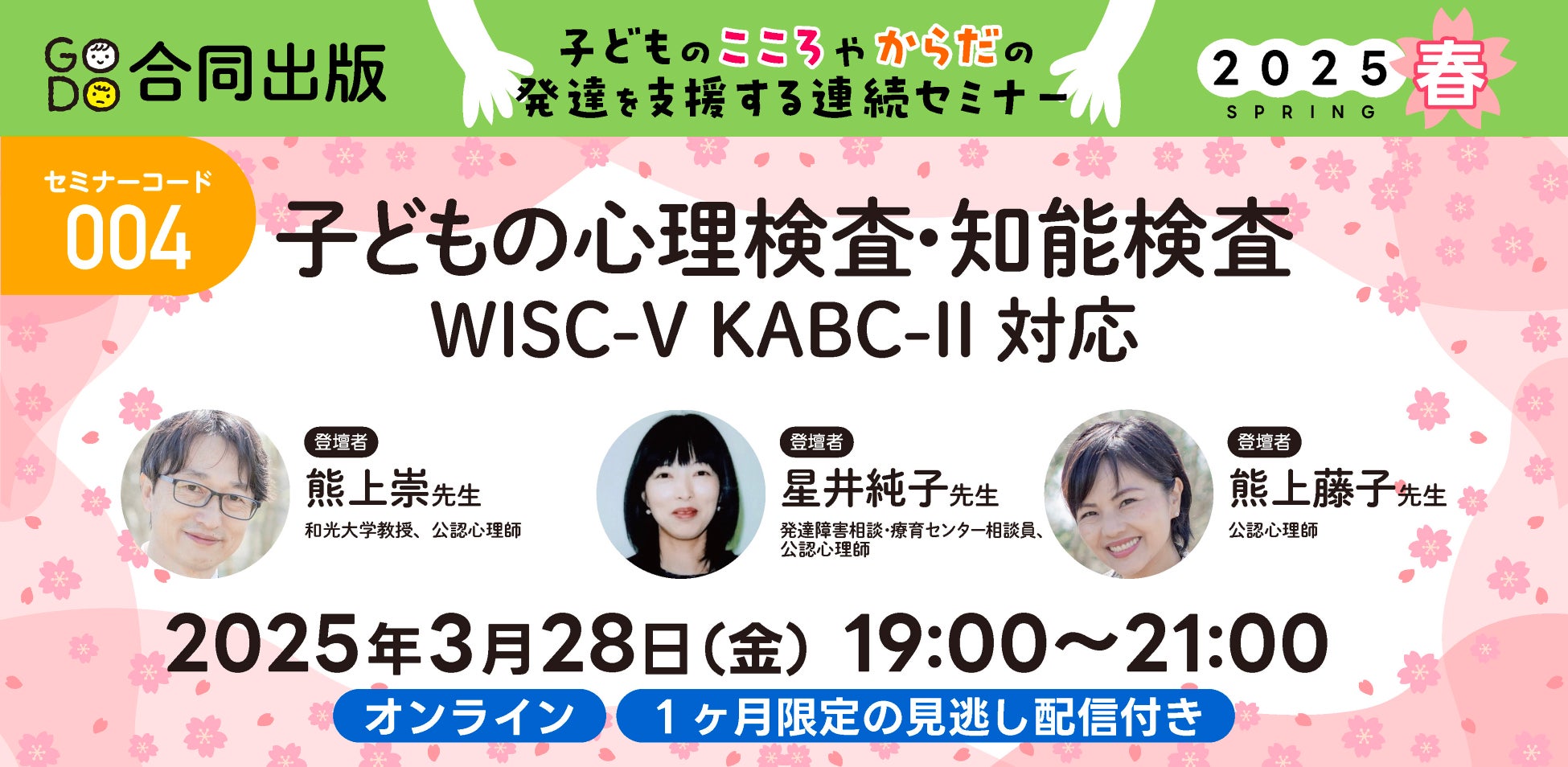 セミナーコード004「子どもの心理検査・知能検査 WISC-V KABC-II対応」