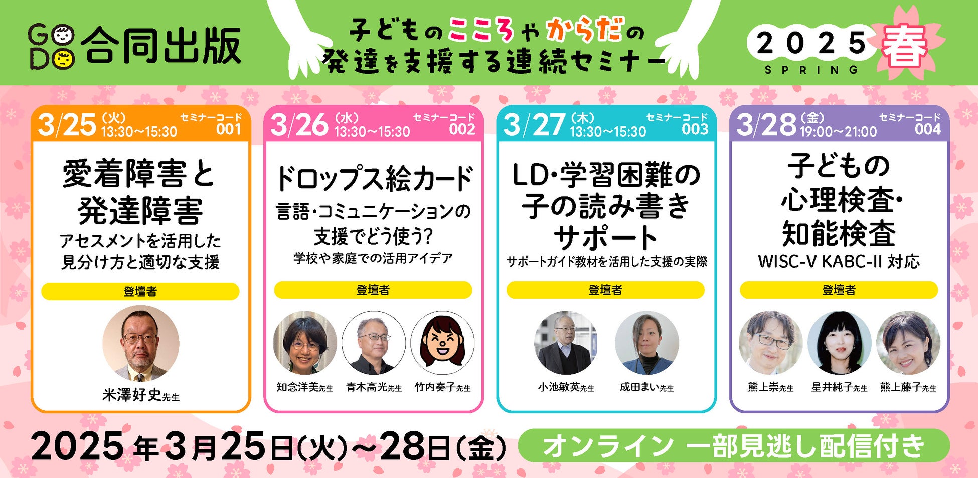 【3月25日〜28日開催】一部見逃し配信付き 愛着障害・ことばの支援・LD・心理検査をテーマにお届け
