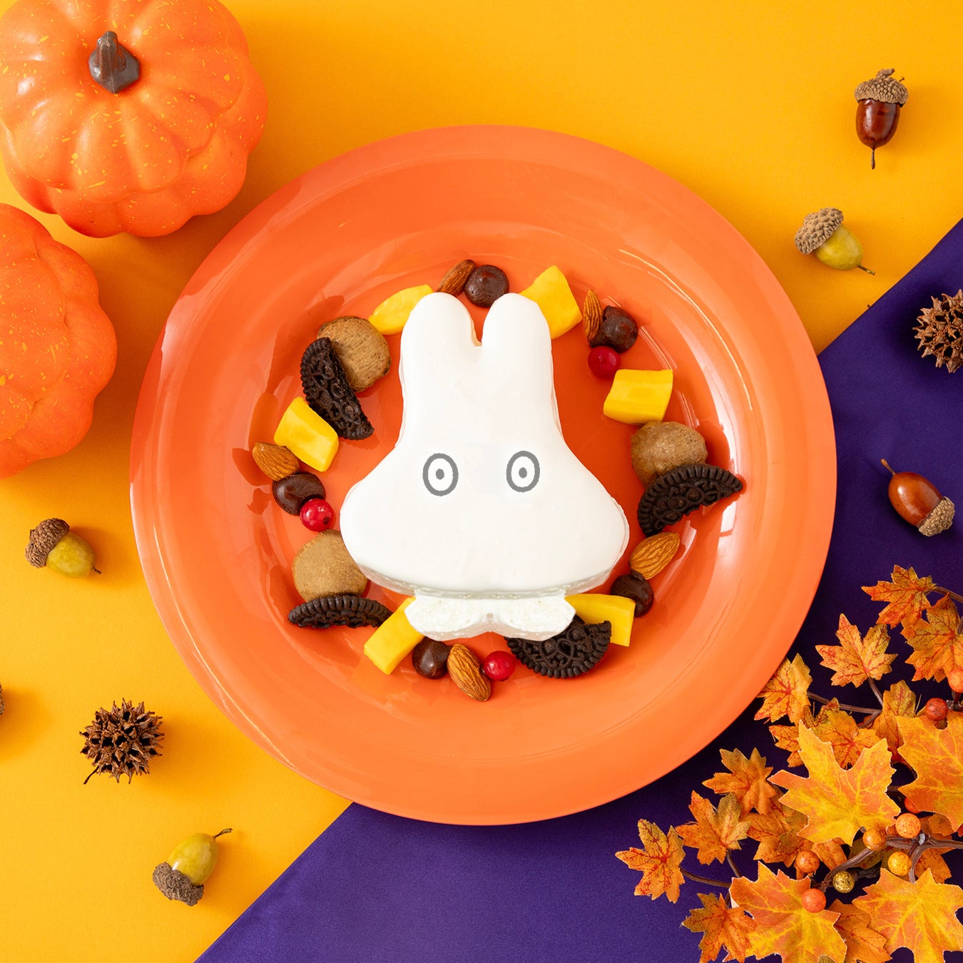 オレンジマーマレードやチョコガナッシュをサンドしたケーキで、おばけミッフィーを表現しました。