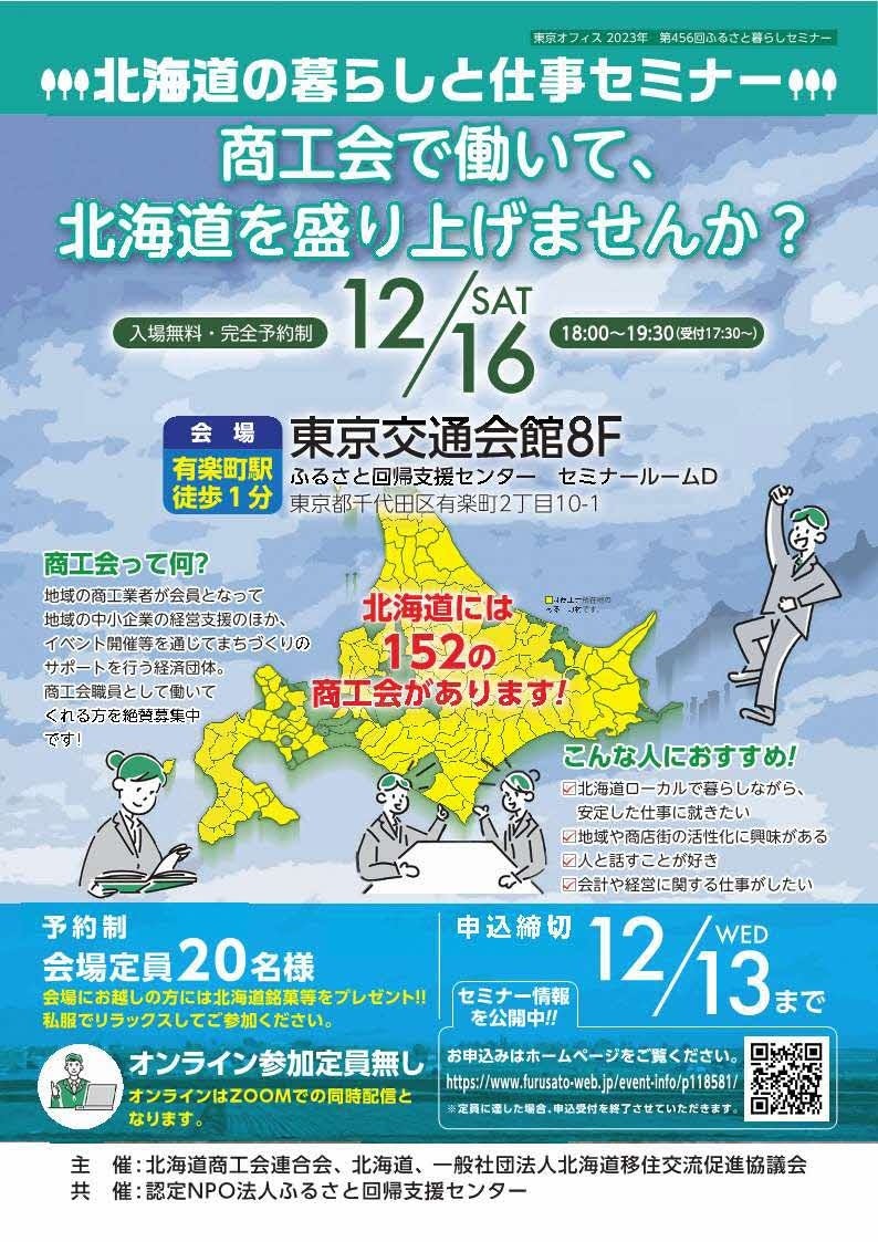 北海道の地域概要や生活費の他、商工会という組織・仕事内容・採用情報などを幅広くご紹介するセミナーを開催します!