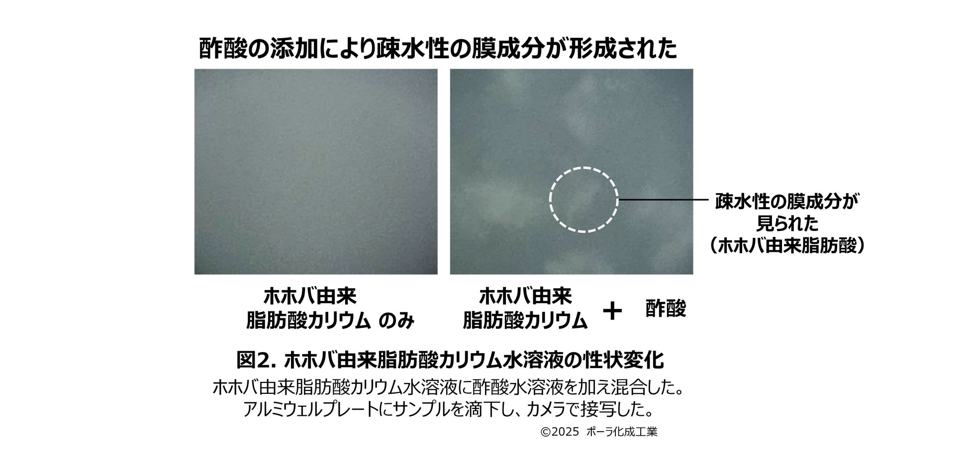 UV応答性化粧膜を追求 pHによって水への溶けやすさが変化する「ホホバ由来脂肪酸カリウム(※2)」に着目