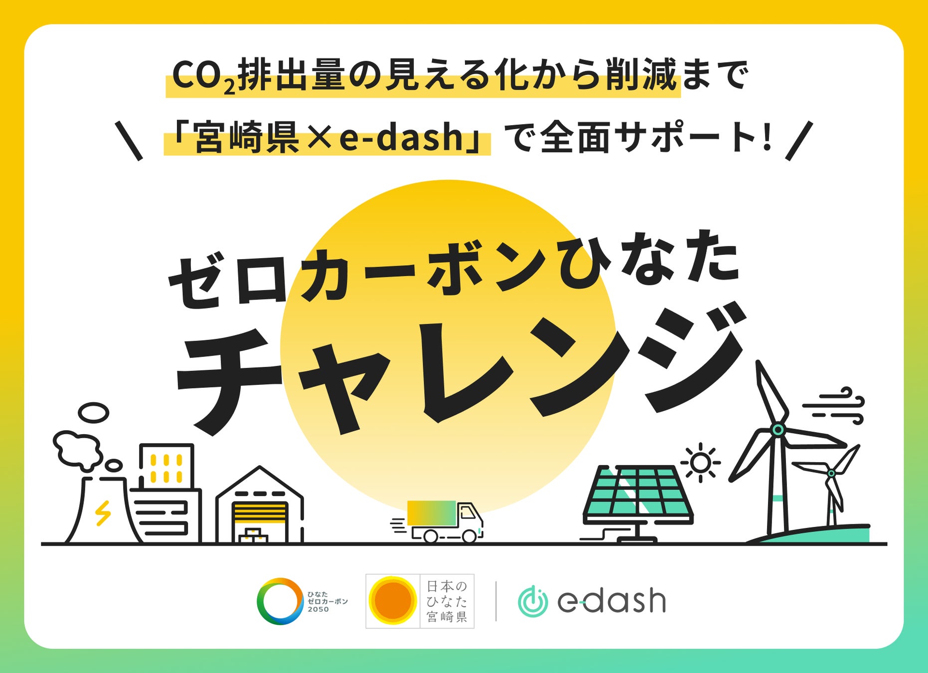 e-dashは、宮崎県が推進する「GHG見える化事業」を受託し、2023年8月から2024年3月末まで県内企業の脱炭素取り組みを支援する「ゼロカーボンひなたチャレンジ」を実施しています。