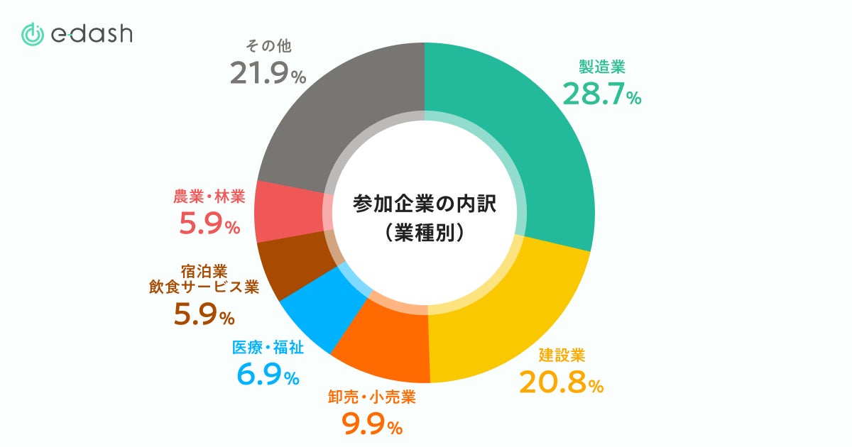 参加企業は約100社で、製造業、建設業、サービス業など多岐にわたります。