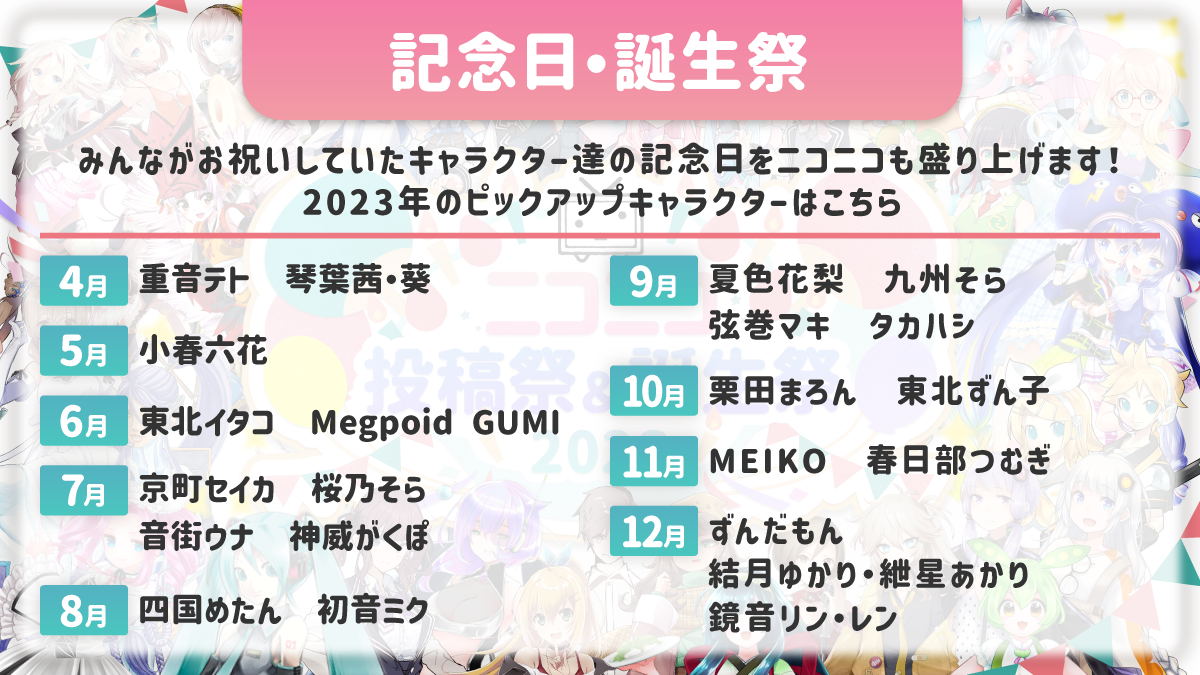 ニコニコの文化「投稿祭」「誕生祭」 2023年の年間スケジュールを公開 ~ユーザー・企業との連携で多彩な企画を盛り上げます~