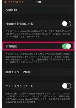 Step2:「一般」―「手首検出」をタップし、設定がオンになっていることを確認します。