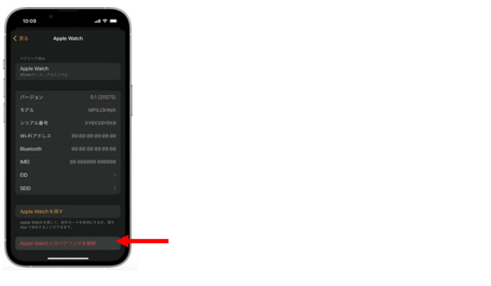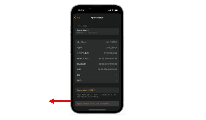 Step3:「Apple Watchとのペアリングを解除」をタップします。