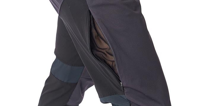 風を防ぎたいパンツの前腿部分には防水透湿性に優れた独自素材エバーブレスエアを配置しています。
