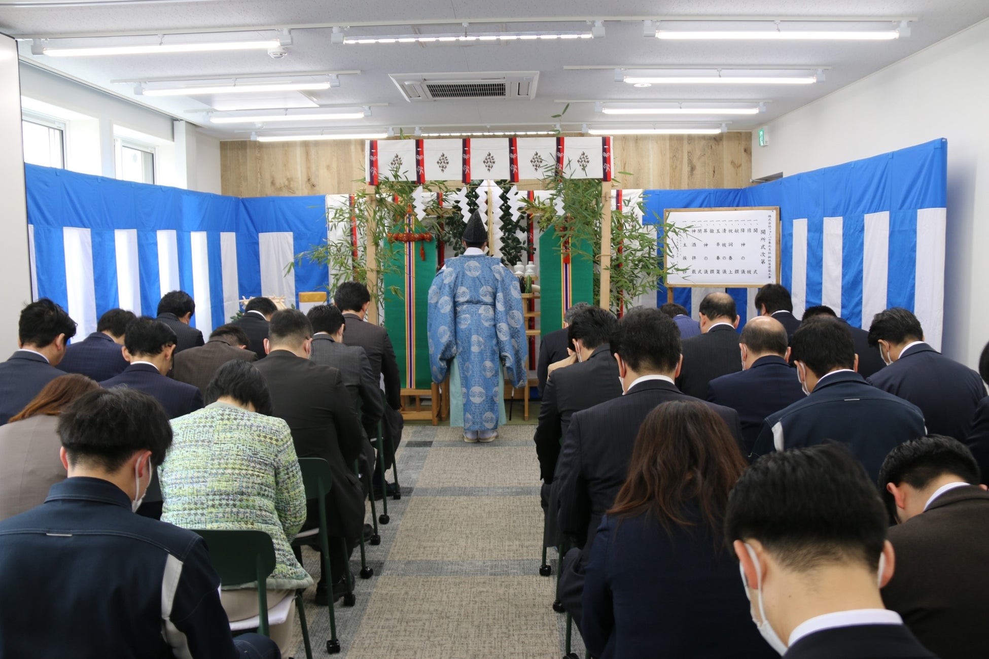 開所式にはフォーバル東北支社の新社屋に青葉神社権禰宜の片倉圭司さまをお招きし、神事および東北支社新社屋の開所式を執り行いました。