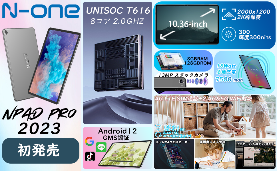 N-One NPad Pro タブレット 10.4インチ Wi-Fiモデル Unisoc T616 8コアCPU、2000*1200 2K超高解像度 FHD IPSディスプレイ、8GB RAM+128GB ROM+1TB TF拡張可能、13MP/5MPカメラ、4G LTE SIM通話+2.4G/5G Wi-Fi対応、GMS認証+6600mAh大容量バッテリー+Type C 急速充電、Bluetooth5.0+GPS、子供にも適当贈り物/子供用タブレットPC+日本語取扱説明書付き