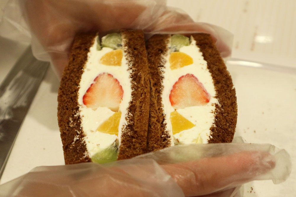 “お店のようなフルーツサンドが出来たので大満足、自宅で待つ家族に早く自慢したい”