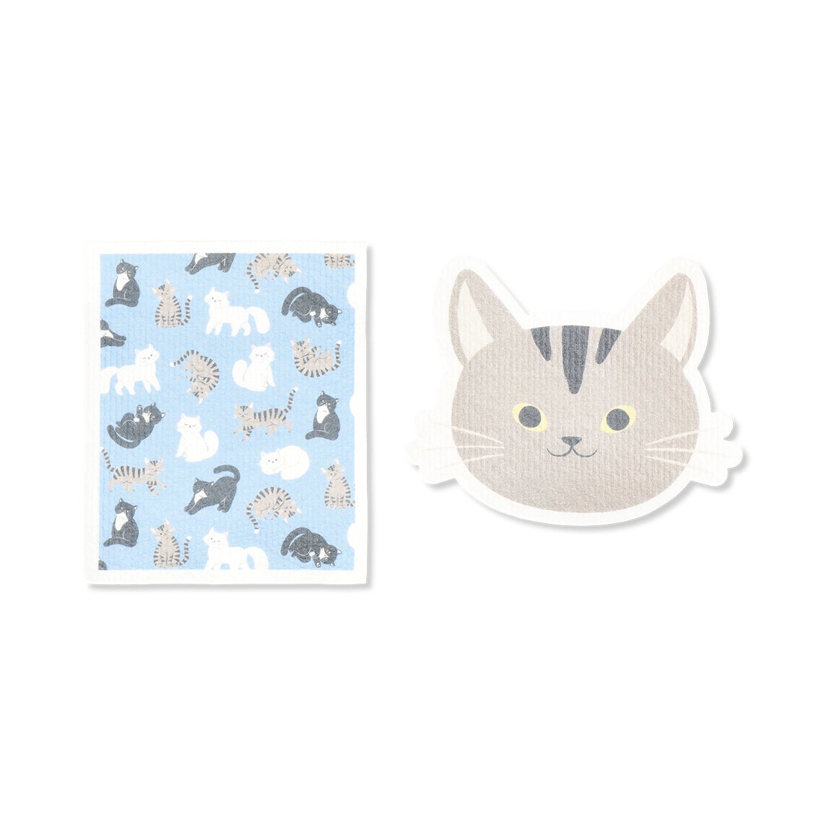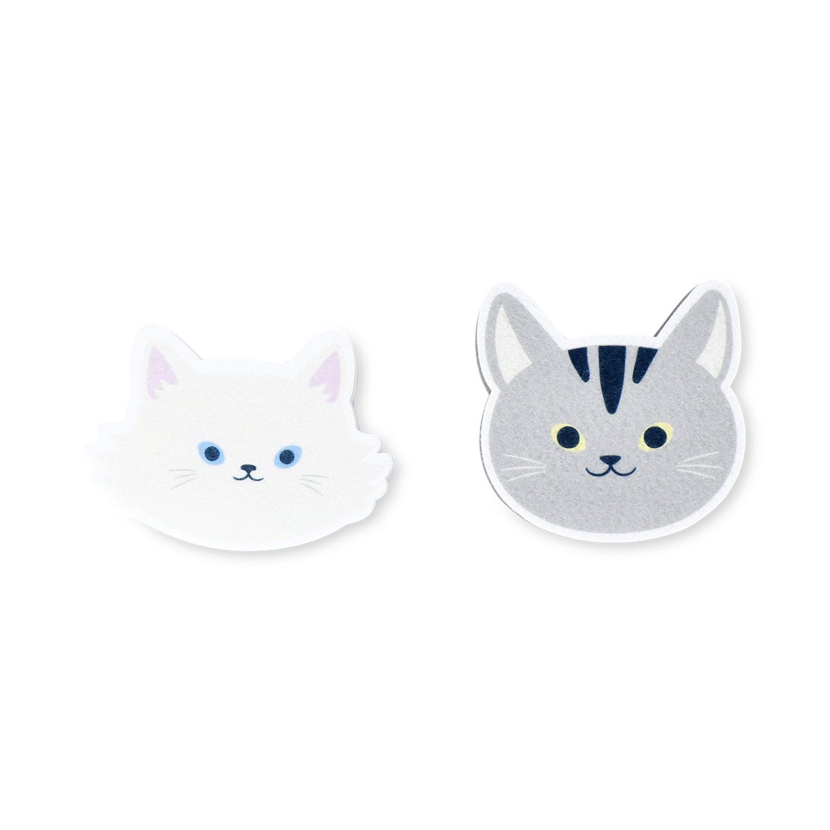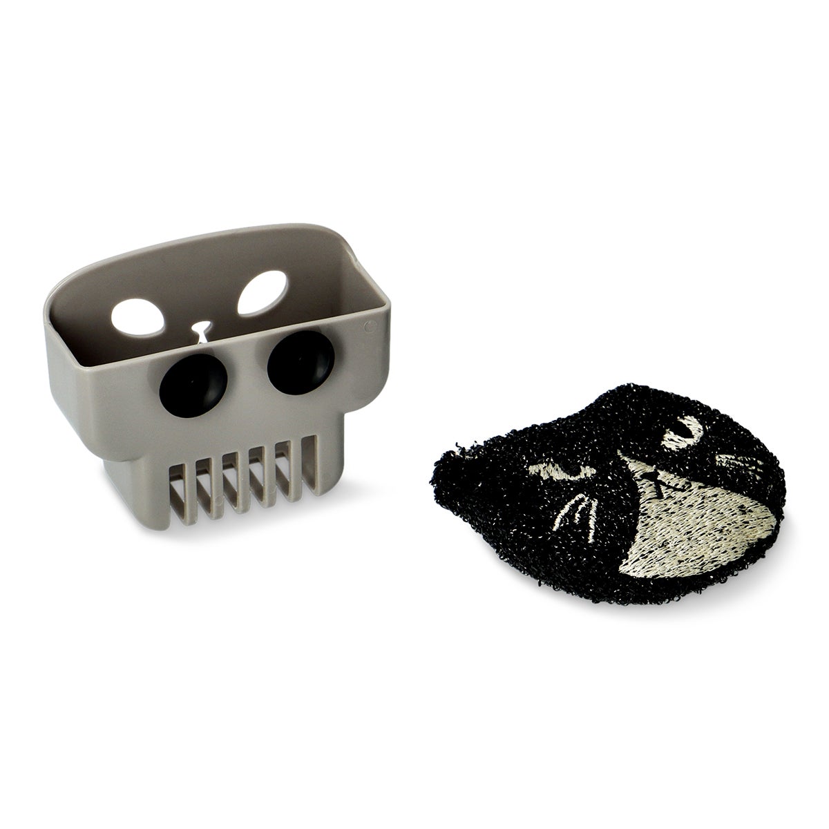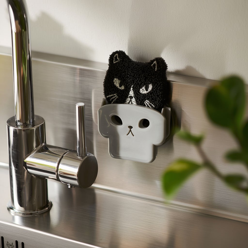 じろっと目つきが鋭めのねこちゃんスポンジは、裏に2つの吸盤がついた便利なホルダー付きです。