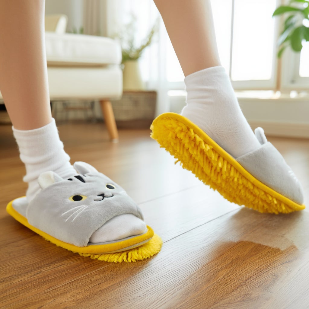 履いてお部屋を歩くだけで自然にお掃除ができます。スリッパ本体とモップ部分がマジックテープでくっついているので、モップだけを洗って清潔に保てるのもポイントです。