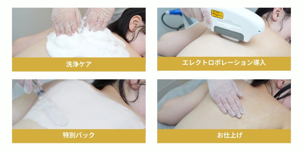 背中は女性の美しさを際立たせる重要な部位ですが、背中のニキビやくすみなどは、脱毛だけでは改善が難しいというお客様の声を多くいただいております。そこで「美背中ケアコース」の提供を開始しました。従来の美背中ケアに新たな2ステップを追加し、バージョンアップした「美背中ケアプレミアムコース」は、後ろ姿に自信を持ち、美しさをより引き立てたい女性の皆様をサポートいたします。