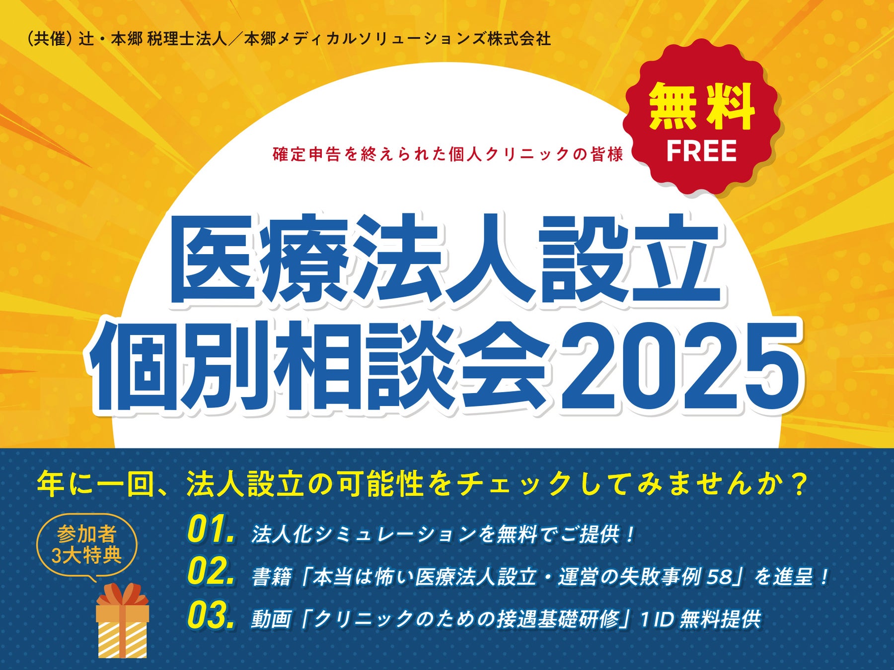 辻・本郷 税理士法人(本社:東京都新宿区、理事長:桑木小恵子)は、本郷メディカルソリューションズ株式会社(本社:東京都新宿区、代表取締役社長:須田博行)と共催で「医療法人設立個別相談会2025」を開催いたします。