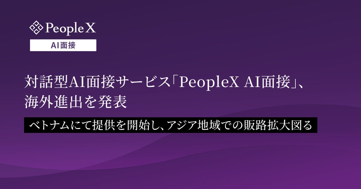 採用から活躍支援まで、AIで人事課題を解決する株式会社PeopleX(本社:東京都新宿区、代表取締役CEO:橘 大地、以下:当社)は、当社が提供する対話型AI面接サービス「PeopleX AI面接」の海外における提供を開始することをお知らせいたします。まずはベトナムでの提供を行い、今後、同地を拠点として広くアジア地域に展開してまいります。