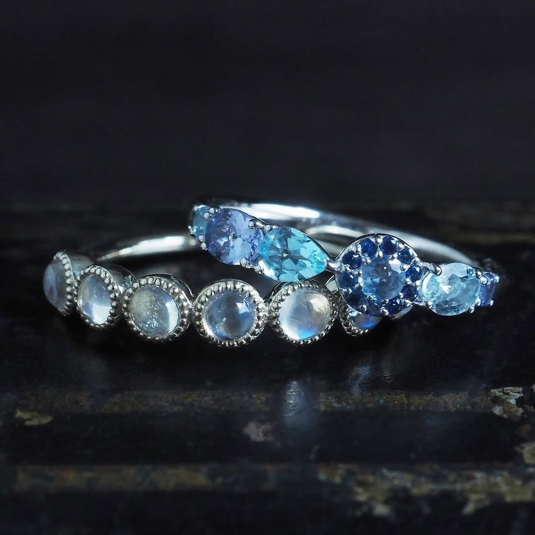 繊細なミル留めでカラーストーンを囲んだ、クラシカルな気品漂う「ミルシェノン」。ストレート(2mm〜3.5mm)やV字シルエットなど、豊富なデザインが揃い、一本でも、重ねづけでも楽しめます。ポンポネやサンクルール、ルーチェとの重ねづけにも好相性。組み合わせ次第で、あなただけの手元コーディネートが完成します。