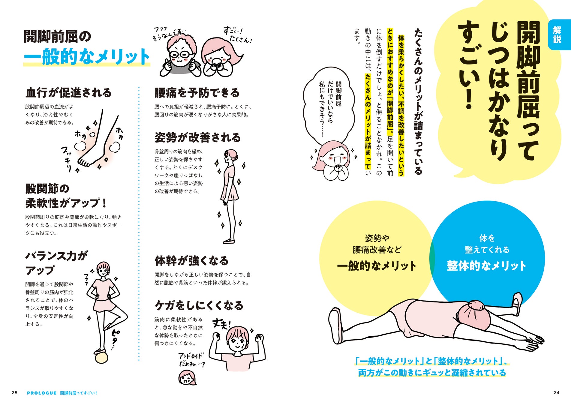 体のかたさや、腰痛などの不調には「開脚前屈」が効果的! 『ズボラでガチガチな私がストレッチしてみたら、不調が改善されました』が6月17日に発売!