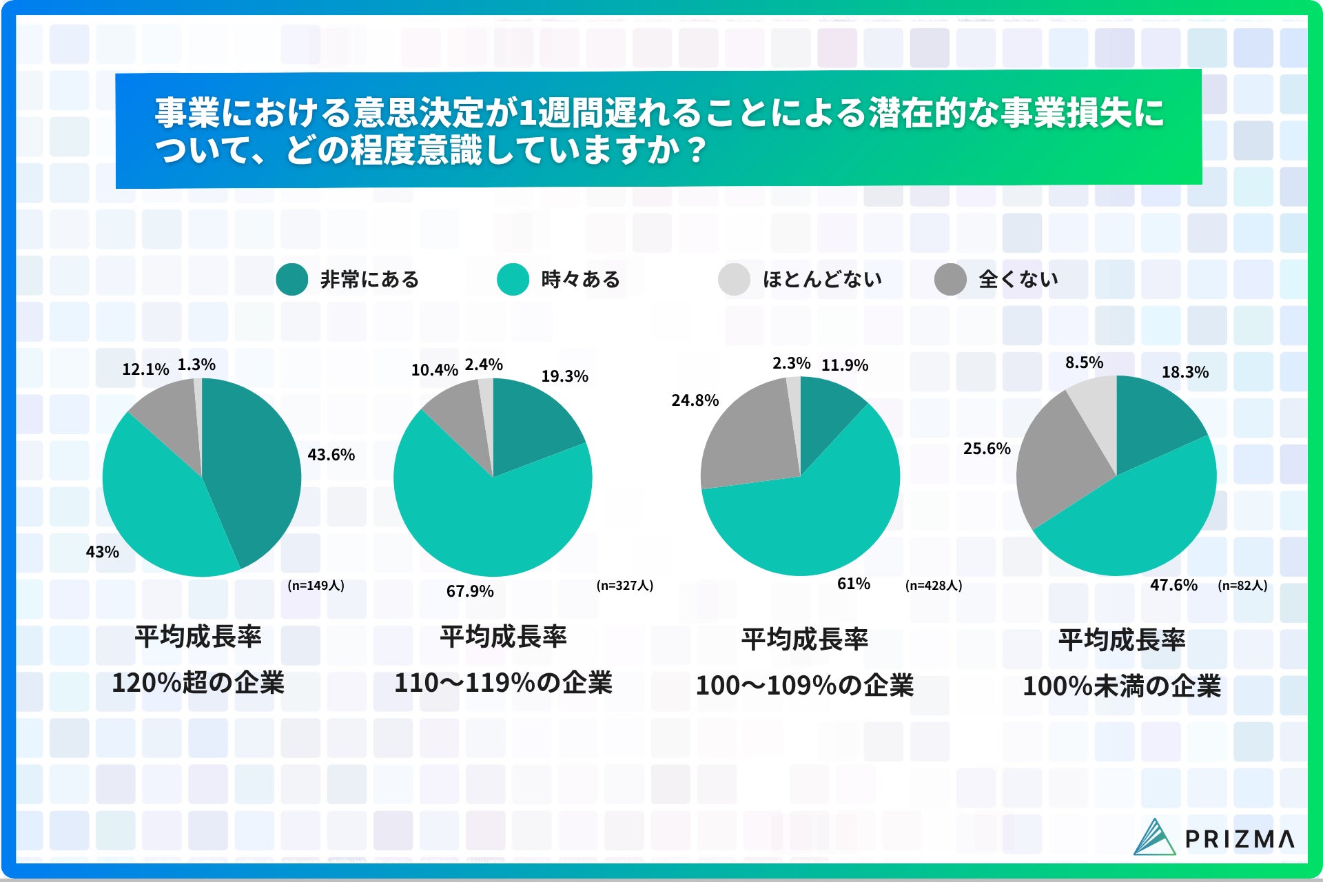 さらに、意思決定の遅延に対する「危機感」にも、成長企業とそうでない企業の間で決定的な差が存在します。