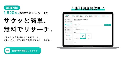 【業界初】コストゼロで始められる:100名×3設問の調査が、毎月3回まで【無料】で実施可能!