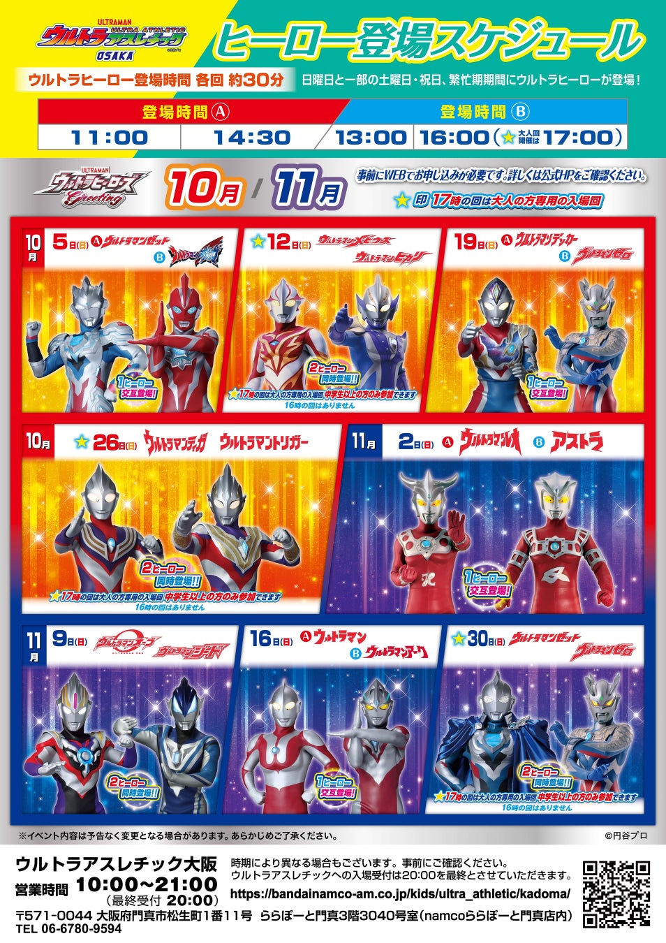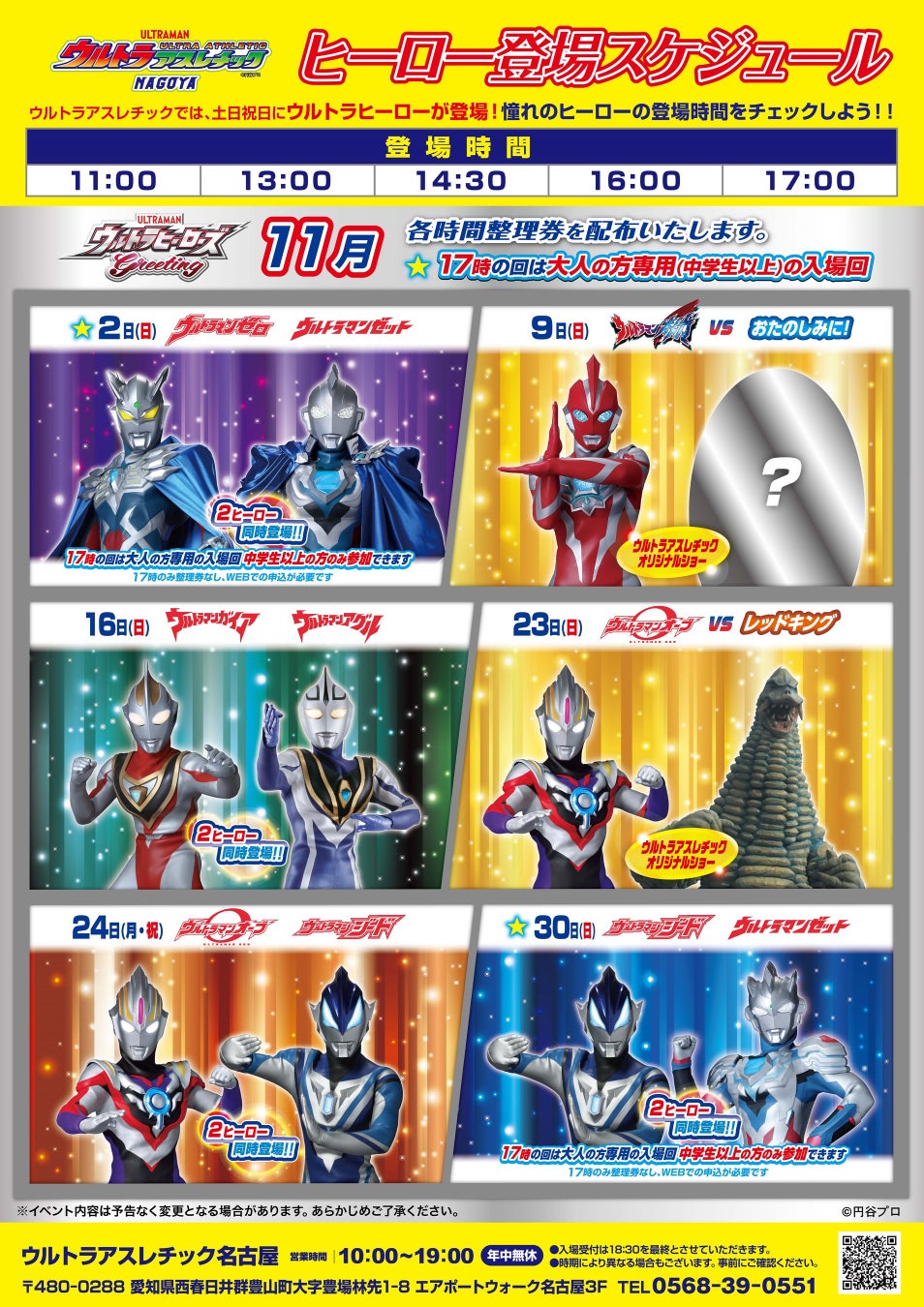 土日祝日には、さまざまなウルトラヒーローが登場し、ショーを見たり、一緒に記念写真を撮ったりできます。各店舗のショーのスケジュールは、以下をご確認ください。