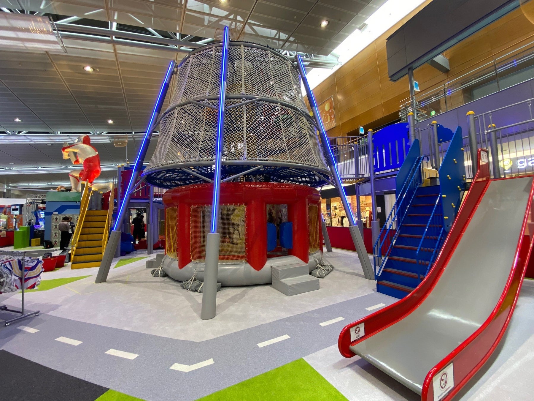 『ウルトラアスレチック』とは、トランポリンやライド、スライダー、ボールプールなどお子さまが全身を使って遊べるアスレチックが遊び放題の施設です。ウルトラマンや隊員をモチーフにしたデザインのビブスを身につけて遊べば、まるでウルトラマンや隊員になった気分になれます!グッズショップも併設しています。