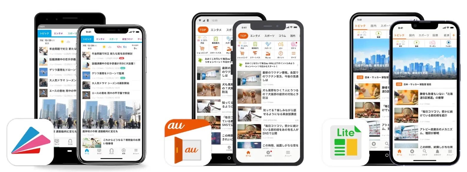 株式会社Gunosyが運営する「グノシー」「ニュースライト」「auサービスToday」に