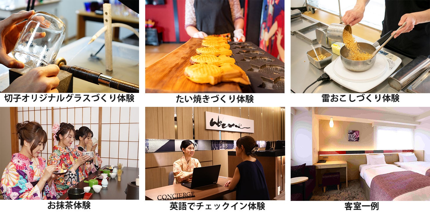 4つの体験プランをご用意しており、浅草のお土産としても有名な「雷おこし」を作れる体験や、キリコが体験できオリジナルグラスが作れるプランなどをご用意しております。いずれのプランも40~120分と観光の合間に体験できるものばかりです。夏休みの思い出づくりに、親子で体験してみてはいかがでしょうか。また、本日から『英語でチェックイン希望』と事前にご連絡いただくと、お子様に生きた英語を体験していただく機会となるよう、フロントスタッフが英語でチェックイン対応いたします。