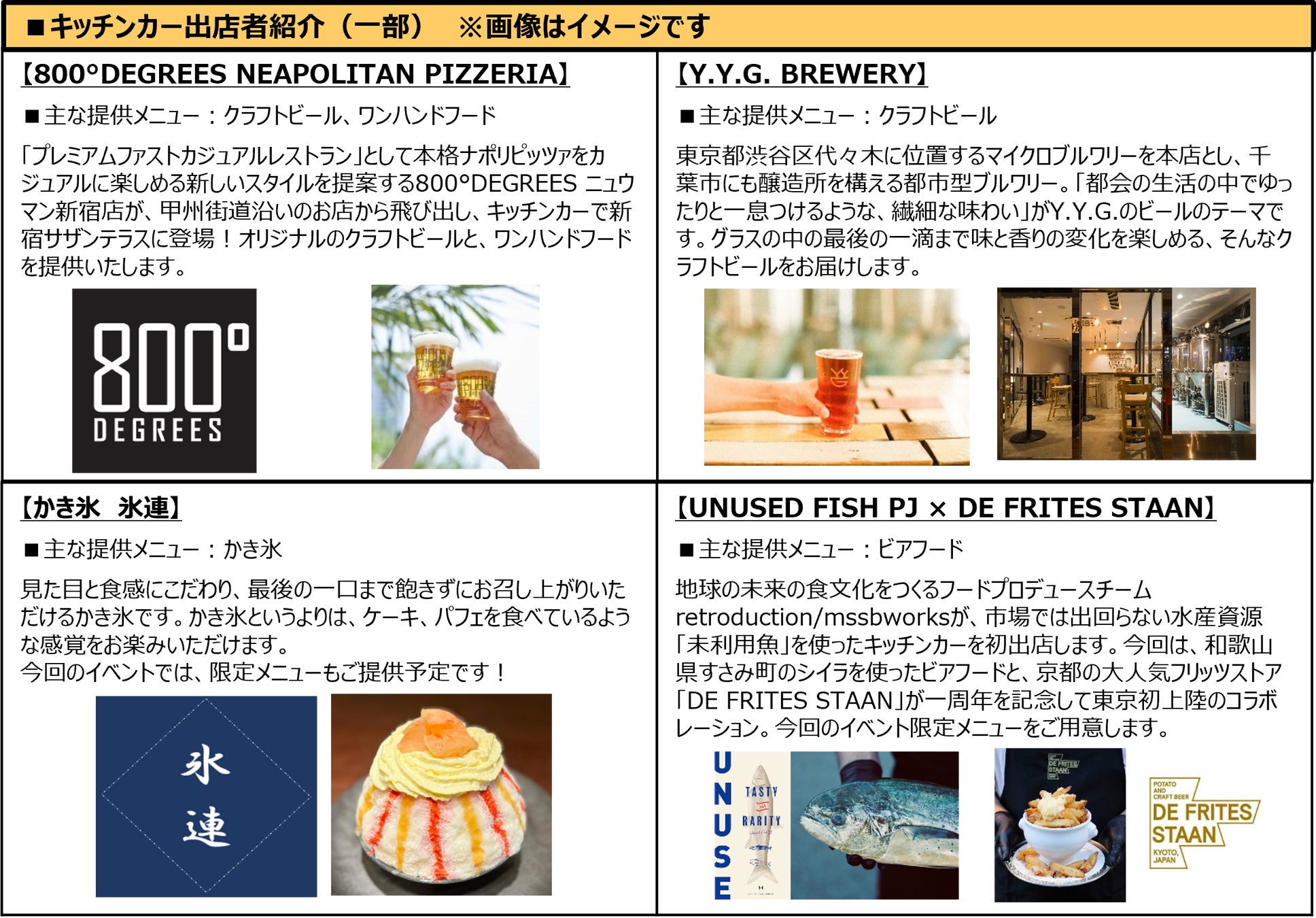 ・様々なフードやスイーツ、ビールやワイン等のアルコールがキッチンカーで登場