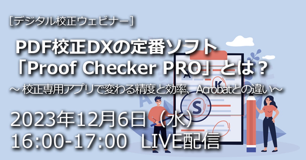 デジタル校正ウェビナー「PDF校正DXの定番ソフト「Proof Checker PRO」とは? - 校正専用アプリで変わる精度と効率、Acrobatとの違い - 」を2023年12月6日(水)に開催