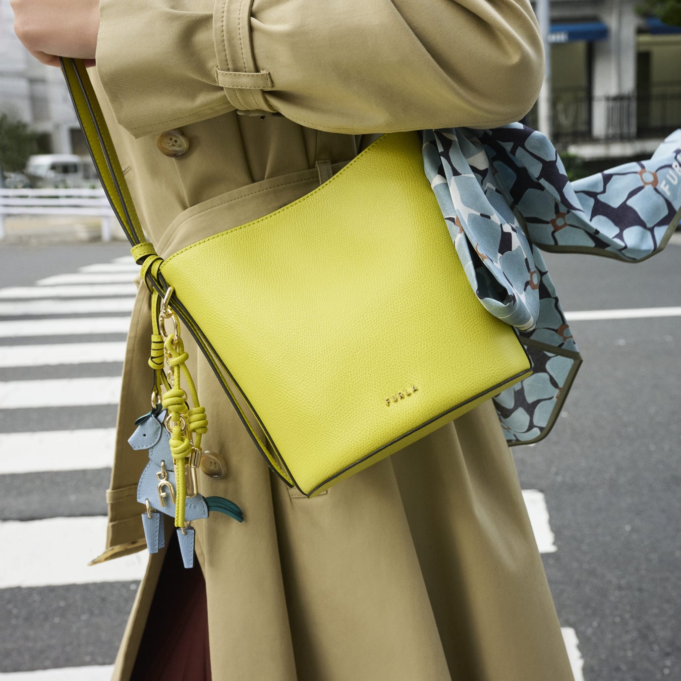新作バッグ、「フルラ ロキシー」は、クラシックなバケットバッグを現代的な感性で再構築し、立体的なフォルムと柔らかな表情が調和した、洗練されたシルエットが特徴です。上質なテクスチャードレザーで仕立てられたこのバッグは、建築的なラインの中に温もりを感じさせるデザインと円筒形のメタリックドロップチャームがサイドにあしらわれ、繊細な輝きと躍動感を添えています。このエレガンスと実用性を兼ね備えたデイリーバッグは、SとMINIの2サイズで展開します。