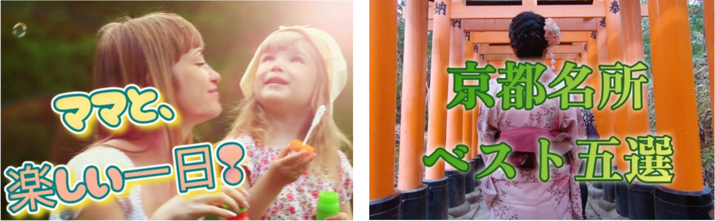 テレビ番組のタイトルやテロップ風の二重縁取りタイトルで動画を華やかに演出できます。