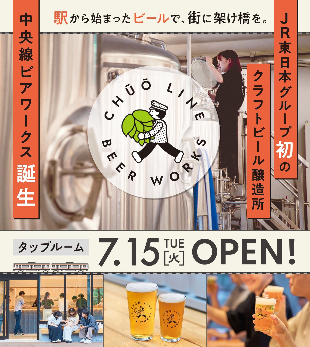 JR東日本グループの株式会社JR中央線コミュニティデザイン(本社:東京都小金井市/代表取締役社長:小澤裕/ 以下「当社」)は、JR中央線東小金井駅~武蔵小金井駅間の高架下に、JR東日本グループ初の直営クラフトビール醸造所「中央線ビアワークス」のタップルーム(※)を 2025 年 7 月 15 日(火)にオープンします。