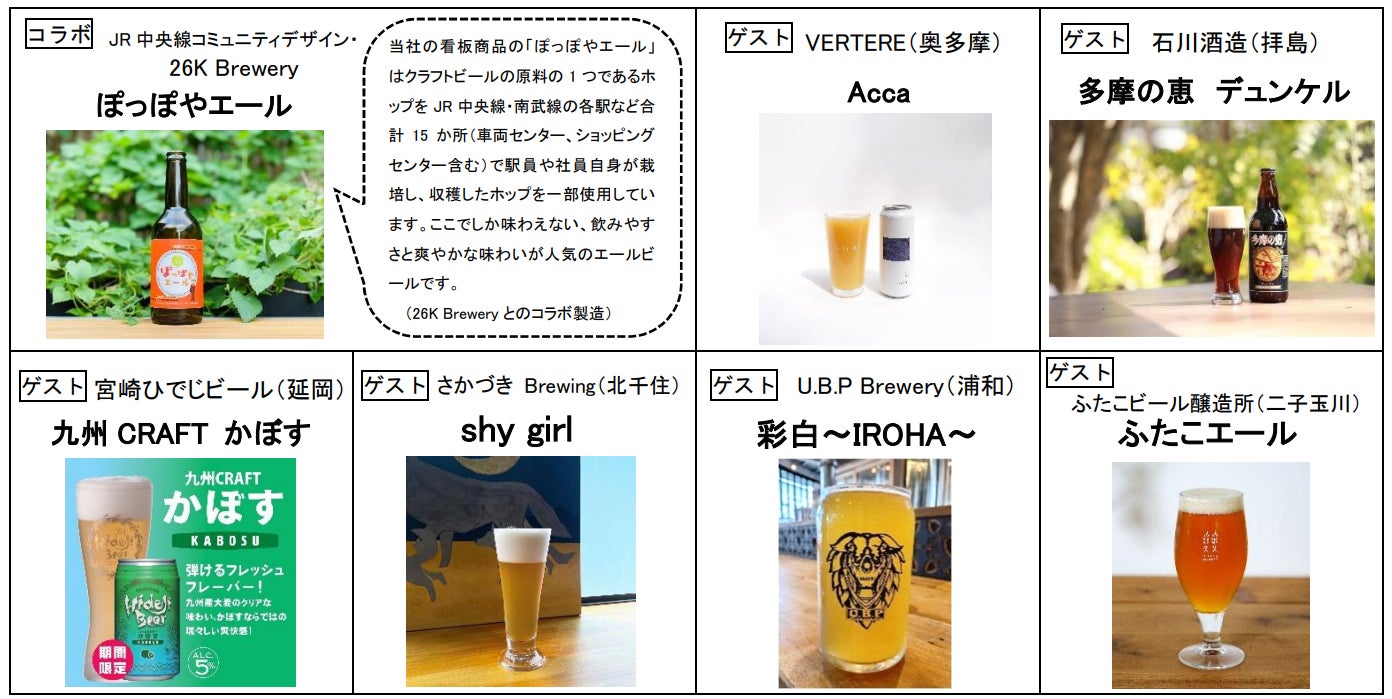 〇今回オープンするタップルームでは「ぽっぽやエール」のほか、多摩エリアや中央線ビアワークスと関係の深いブルワリーのクラフトビールを数種類のおつまみとともにお楽しみいただけます。
