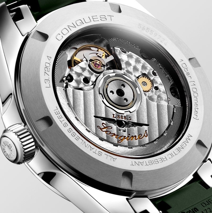 シースルーのねじ込み式ケースバックから鑑賞できるムーブメントは、シリコン製ヒゲゼンマイと革新的な非磁性部品を備え、ISO764規格を上回る耐磁性を実現し、日常的な実用性と卓越した性能を両立させています。すべてのモデルの6時位置に日付表示を備え、機能的なエレガンスを完成させています。