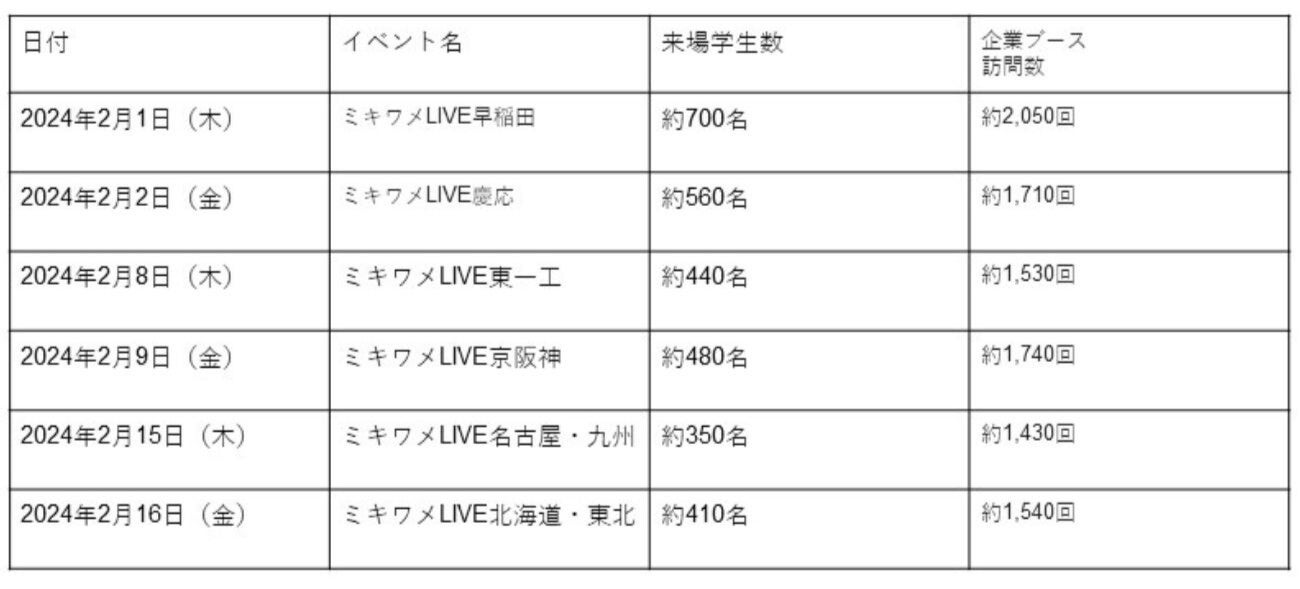 新卒採用支援やPersonality Techを通じたHR事業「ミキワメ」を提供する株式会社リーディングマーク(本社:東京都港区、代表取締役社長:飯田 悠司、以下 リーディングマーク)は、2024年2月1日・2日・8日・9日・15日・16日の6日間で大学・地方別オンライン合同企業説明会「ミキワメLIVE」を開催しました。