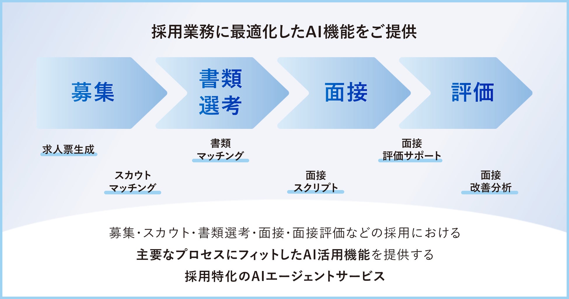 今回の機能追加により、HRmony AIは「募集」「スカウト」「書類選考」「面接」「面接評価」という採用プロセスの主要フェーズすべてを一貫してAIで支援するプラットフォームへと進化します。