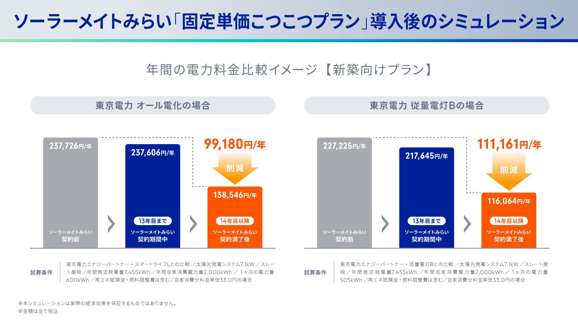 なお、ソーラーメイトみらい2025年度プランの第二弾として、少額の初期費用で太陽光発電システムの導入が可能となり、発電した電気は一定量まで無償でご利用いただける新プランの発売を今秋予定しております。