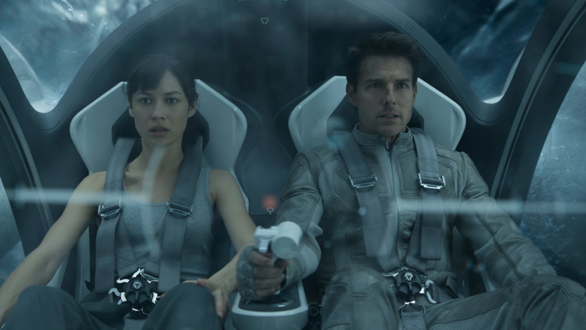 異星人の侵略を受けて地球は荒廃し、生き残った人類は他の惑星へ移住する。そして2077年。地球に残ったジャックとヴィクトリアが、無人偵察機ドローンを用いて地上を監視していた。任務終了まであと2週間となったある日、謎の信号を感知したジャックがパトロールしていたところ、未確認飛行物体が落下する。それはカプセル型の宇宙船で、中に乗っていた女性は、ジャックの夢に毎夜出てくる見知らぬ女性と瓜二つだった。