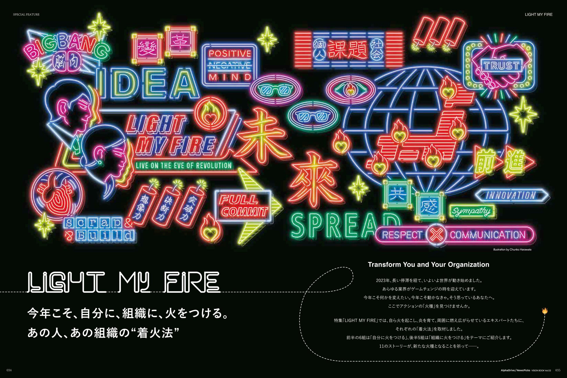 本号第一特集のテーマは、「LIGHT MY FIRE」。今年こそ、自分に、組織に、火をつける。あの人、あの組織の「着火法」。