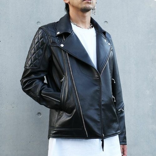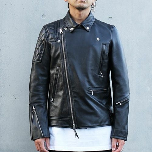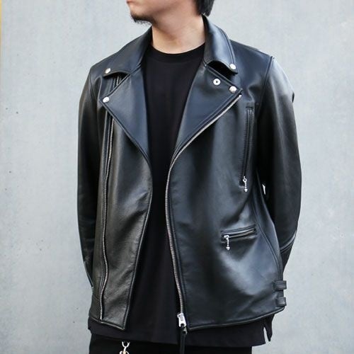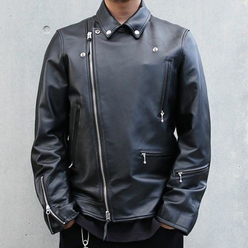 今回販売する新作のライダースジャケット「KADOTANI / DOUBLE TRIBE」は、アメリカの族「ヘルズエンジェルズ」が好んだLanglitizLeather/(PADDED)COLUMBIAと、イギリスの族「ロッカーズ」が好んだLEWIS LEATHER/LIGHTNINGをイメージソースに、『ニコイチ』でオマージュしたデザインです。