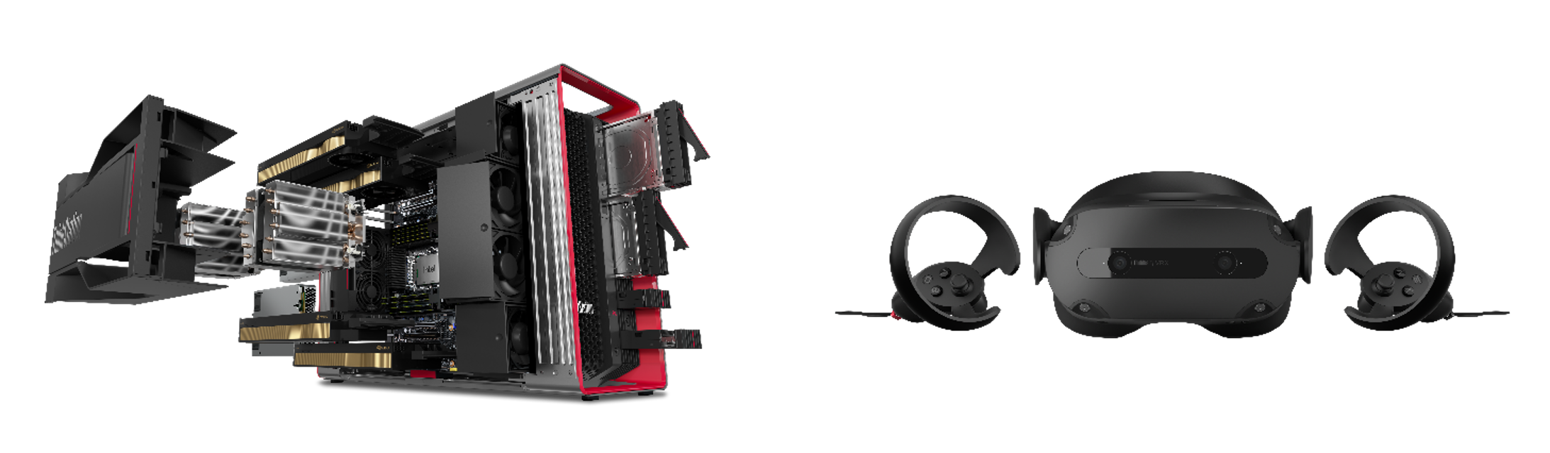 この機器は、4 台のThinkReality VRXヘッドセットをサポートします。各ヘッドセットは、プロジェクトデータセットの大きさや複雑さに関わらず、専用の NVIDIA RTX6000 Ada GPUへ完全にアクセスして、最高性能のプロ用の VR 体験を提供します。