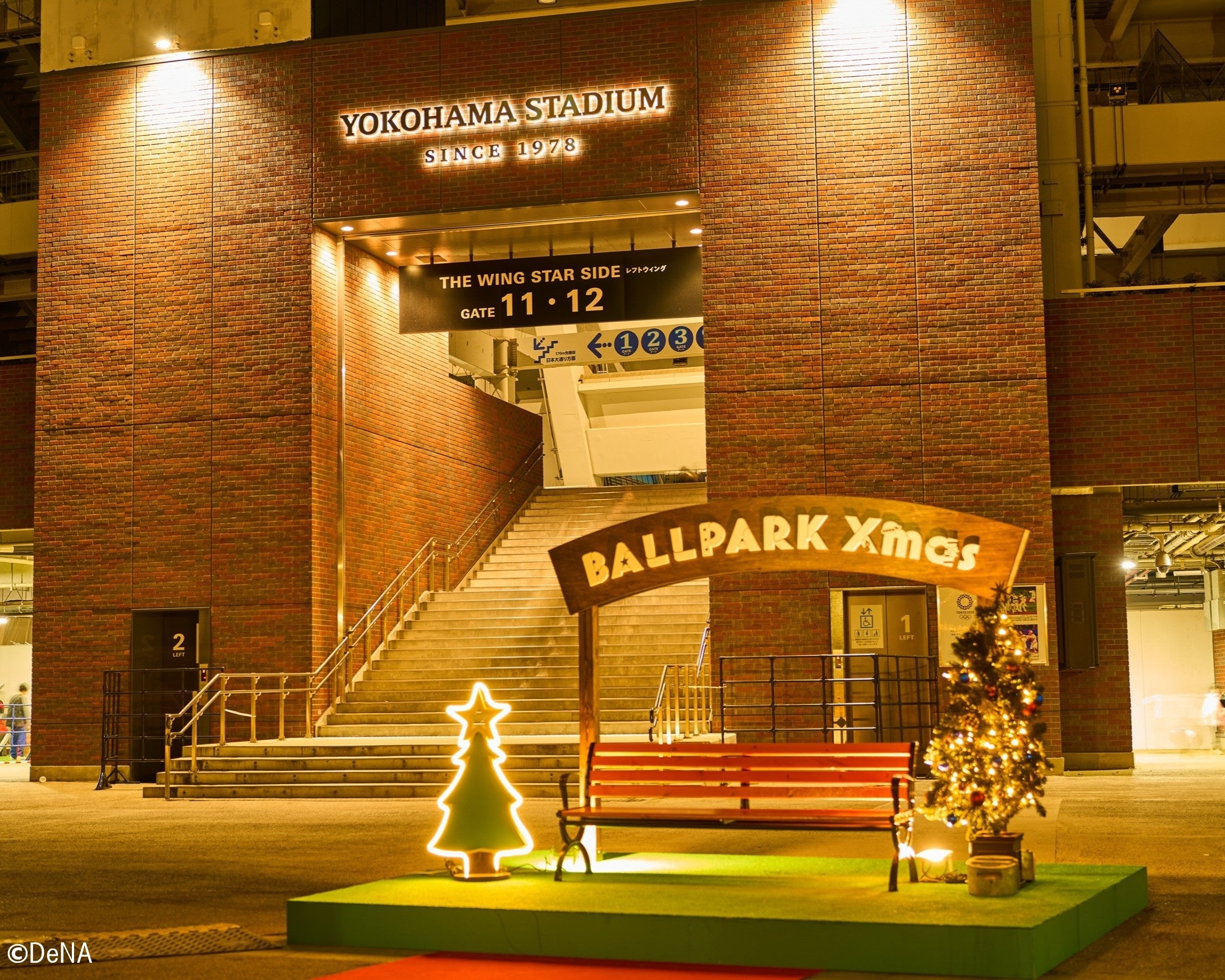 関内駅側の横浜公園入口ではクリスマスベンチが、日本大通り側の入り口には高さ約8mのホワイトクリスマスツリーと光の回廊がご来場の皆さまをお出迎えします。横浜スタジアムを背景に、冬の想い出として記念撮影をお楽しみください。