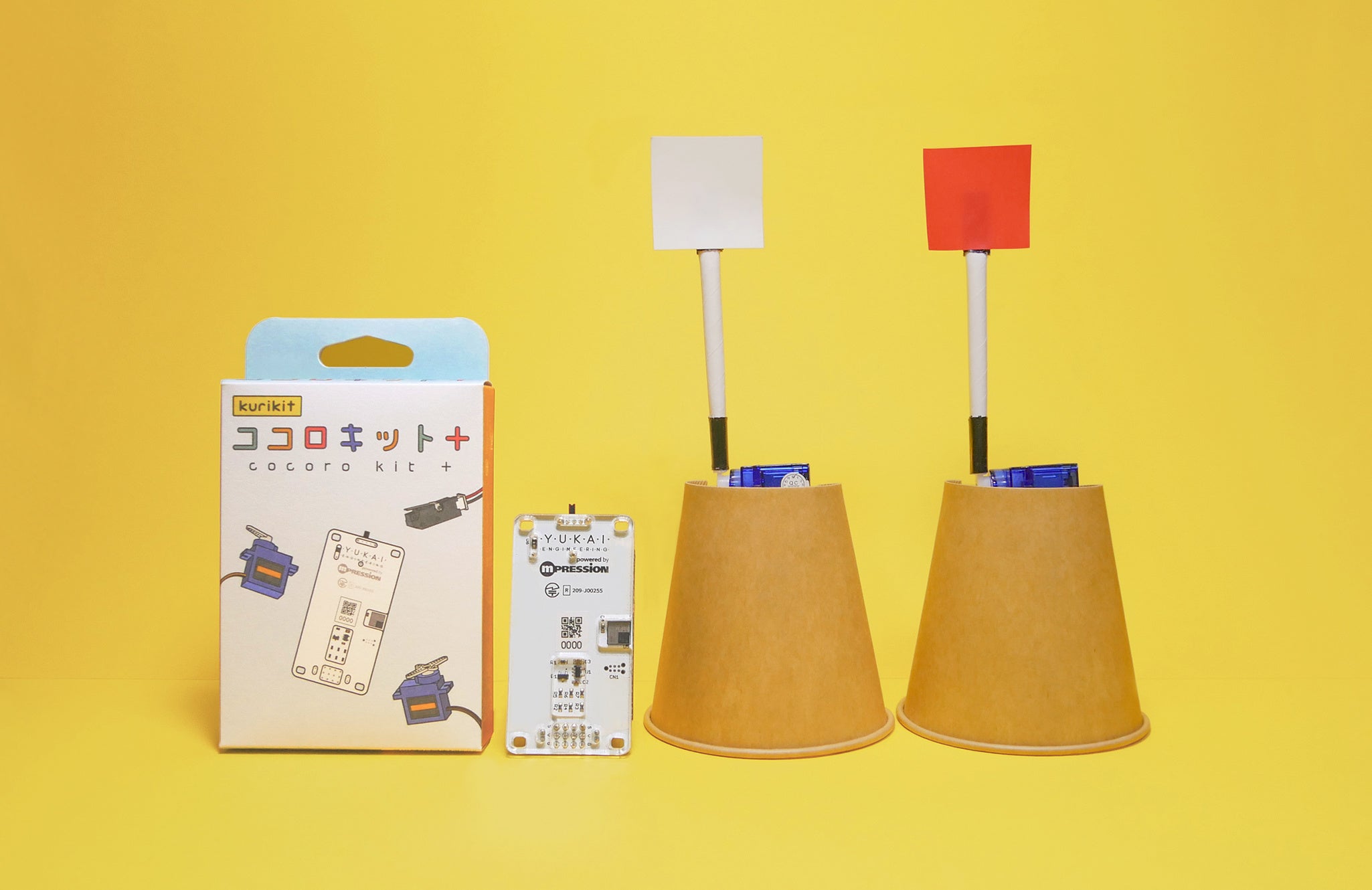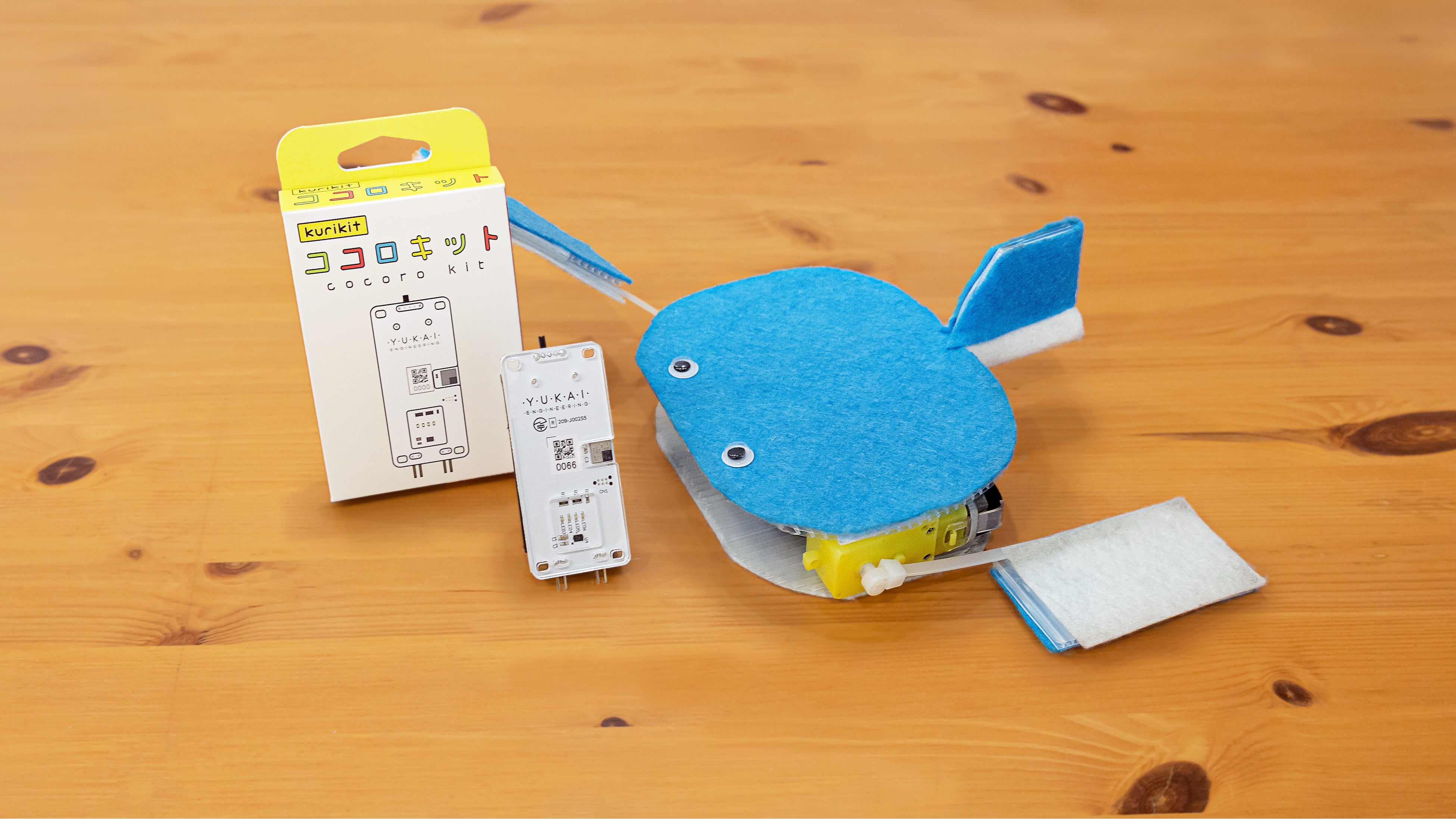 また、「kurikit」のプログラミング拡張キット「ココロキット」と「ココロキット+」を用いて、小学生から簡単なプログラミングでAIロボットづくりができるよう提案しています。