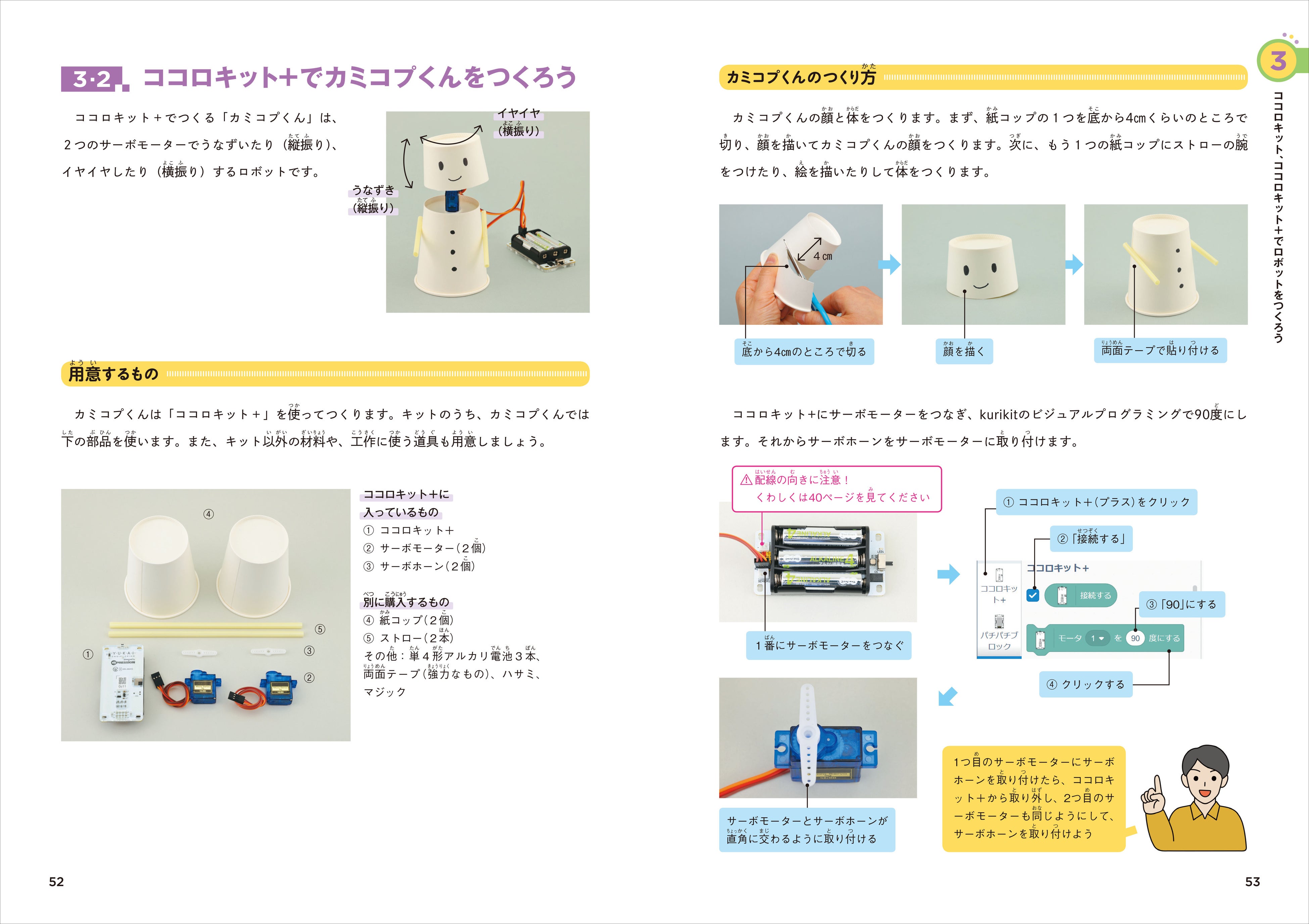 「つくるって、楽しい。やってみるって、楽しい。好きなことを見つける一歩」との想いをこめて生み出してきたkurikitシリーズをさらにパワーアップするノウハウを詰め込みました。本書でロボットづくりに用いられる「ココロキット」や「ココロキット+」という商品は、自分で作ったロボットと心を通わせるような体験をしてほしいという意味も込めて「ココロ」という言葉を使った商品名としました。そして機械学習の技術は、そのようなロボットの「ココロ」を生み出す上で大変有用な技術です。本書の作例を作ることで技術を体験・習得し、自分のアイディアに応用して様々なユニークな作品を生み出してくれることを期待しております。