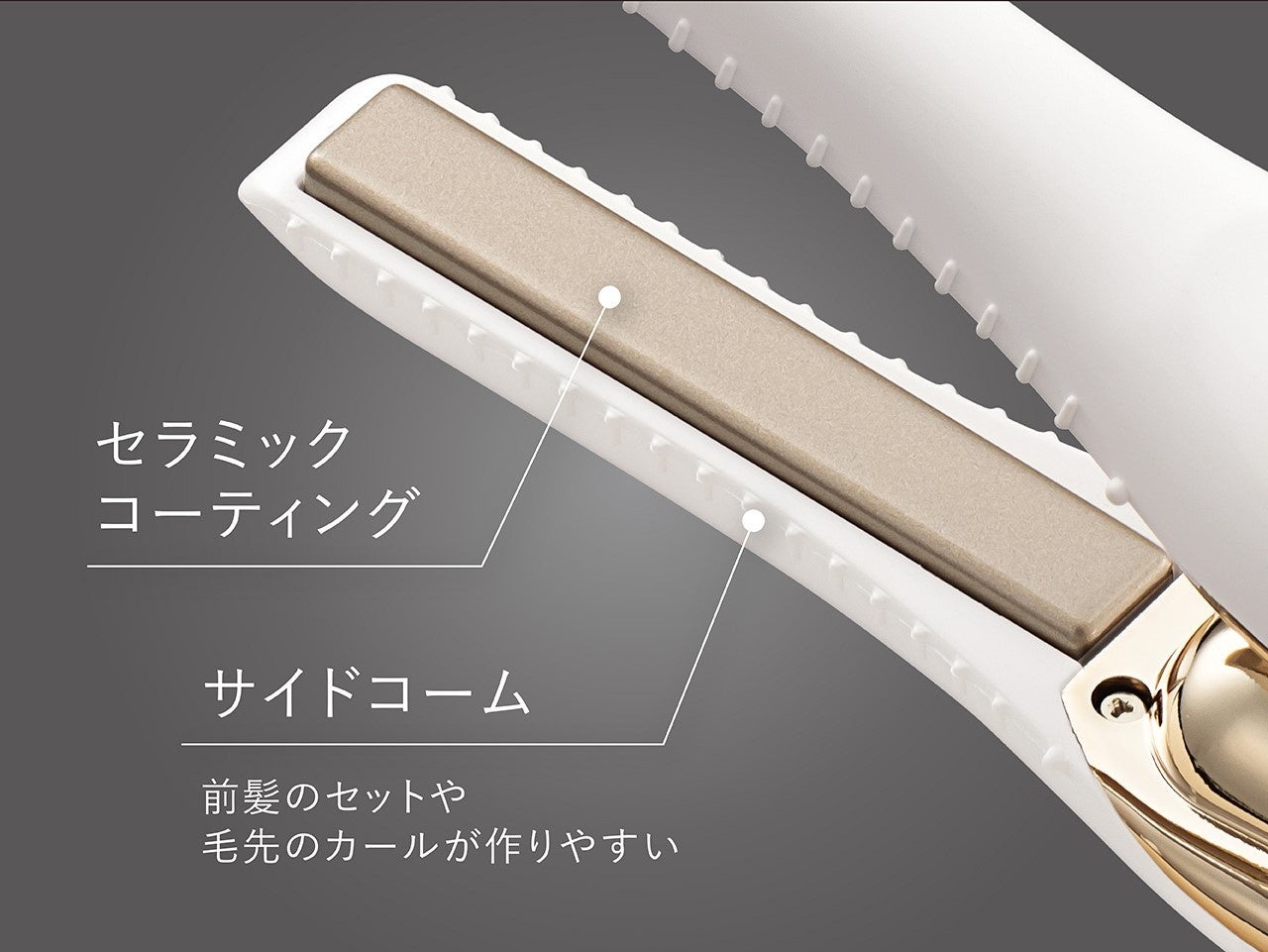 ・プレートは髪に熱をやさしく素早く伝えるセラミックコーティングを採用。髪に密着するクッション機能も搭載。