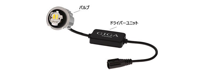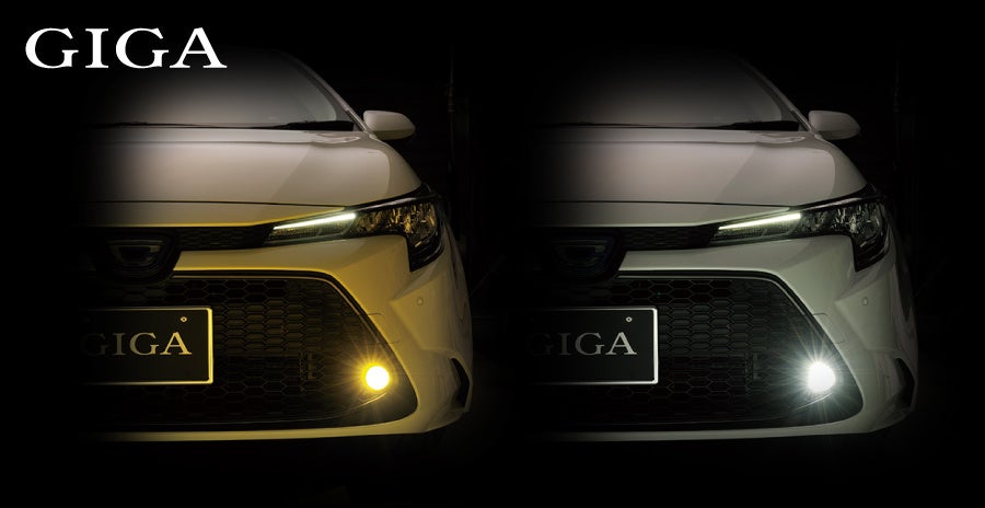 純正LEDバルブと交換できるバイカラーLEDフォグバルブ。手前も明るく照射|GIGA(ギガ)