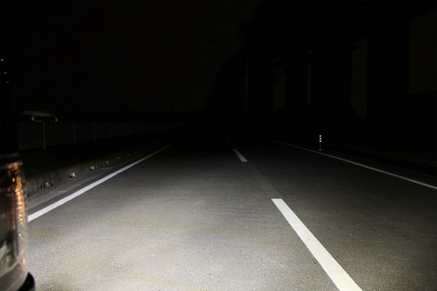 隙間のないワイドLEDチップを縦に配置。手前から遠方までムラなく照射し夜間の運転をサポートします。特に、ハイエースやアトレーなどのキャブオーバー車は手前側が明るくなることで、運転のしやすさが向上します。
