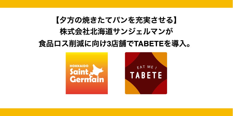 「TABETE(タベテ)」が、6月 1日(木)より、株式会社北海道サンジェルマン (本社:北海道札幌市西区発寒、代表取締役社長:北島聖、以下「北海道サンジェルマン」)は、3店舗にて、食品ロス削減対策として導入されることになりました。