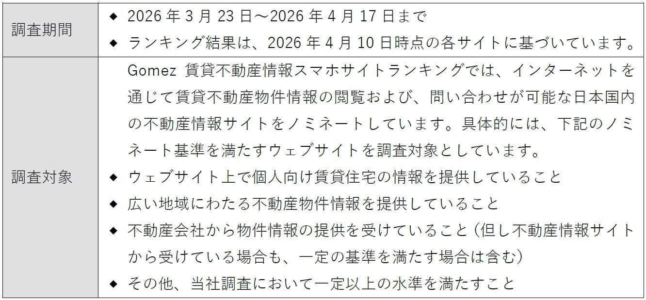 「Gomez賃貸不動産情報スマホサイトランキング」の発表について